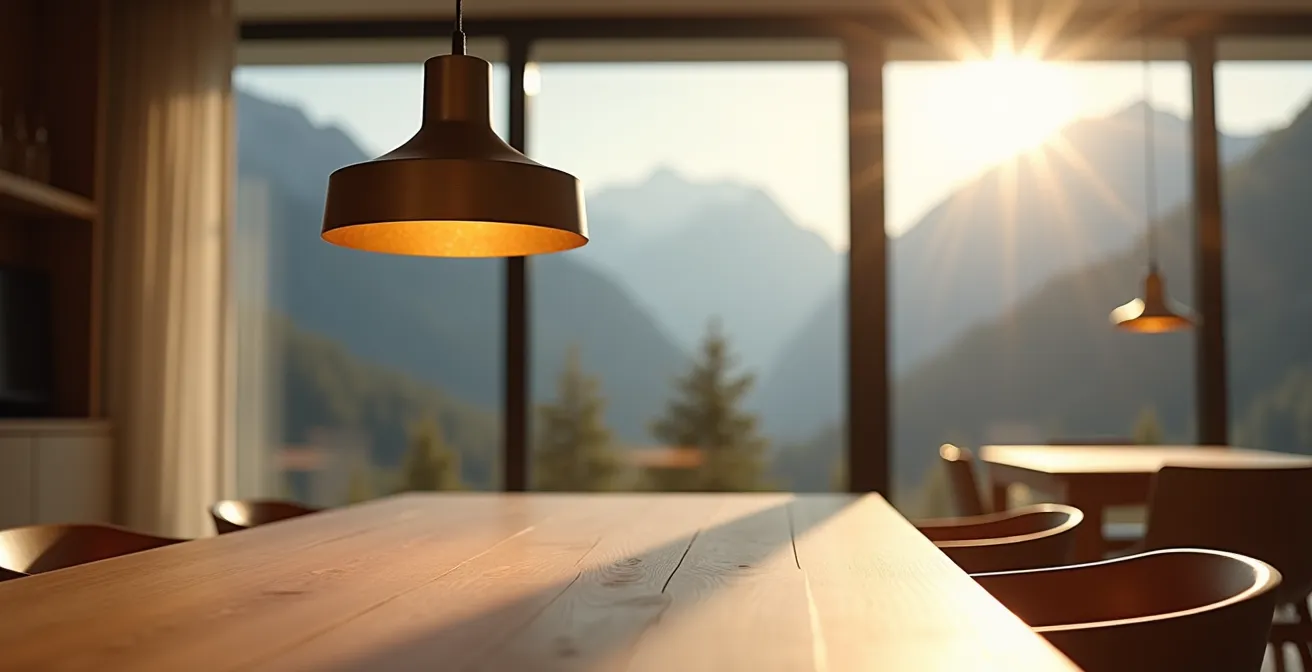 La salle à manger est souvent le cœur battant d’un foyer suisse, un lieu de convivialité où les repas s’étirent en longues discussions. Le choix du luminaire qui surplombe la table semble alors n’être qu’une question de goût, une touche finale décorative. On se concentre sur le style, le matériau, le budget. Pourtant, sous un plafond standard de 2,40 mètres, cette décision est bien plus technique et stratégique qu’il n’y paraît. Un mauvais choix peut littéralement jeter une ombre sur vos moments les plus précieux, rendre un plat savoureux terne, ou créer un inconfort visuel permanent.